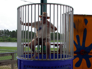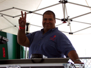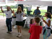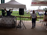 Hughes Supply, heckles the crowd to dunk him for donations to